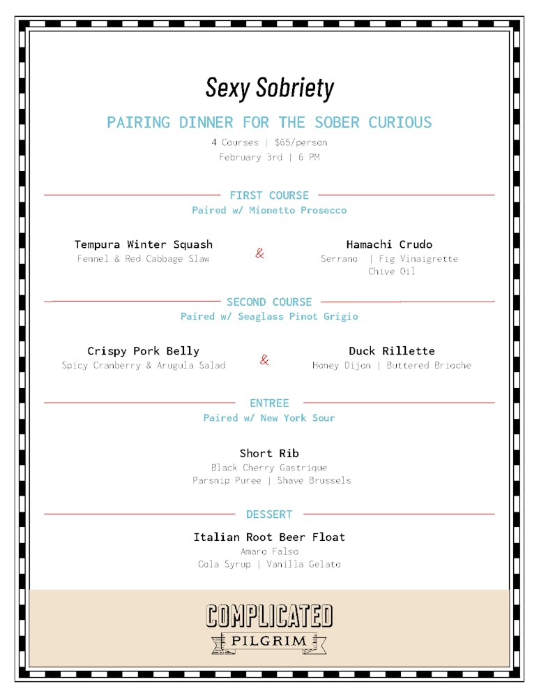 Join us on Tuesday, February 3rd, for Sober Is Sexy, a non-alcoholic wine dinner for the sober curious.